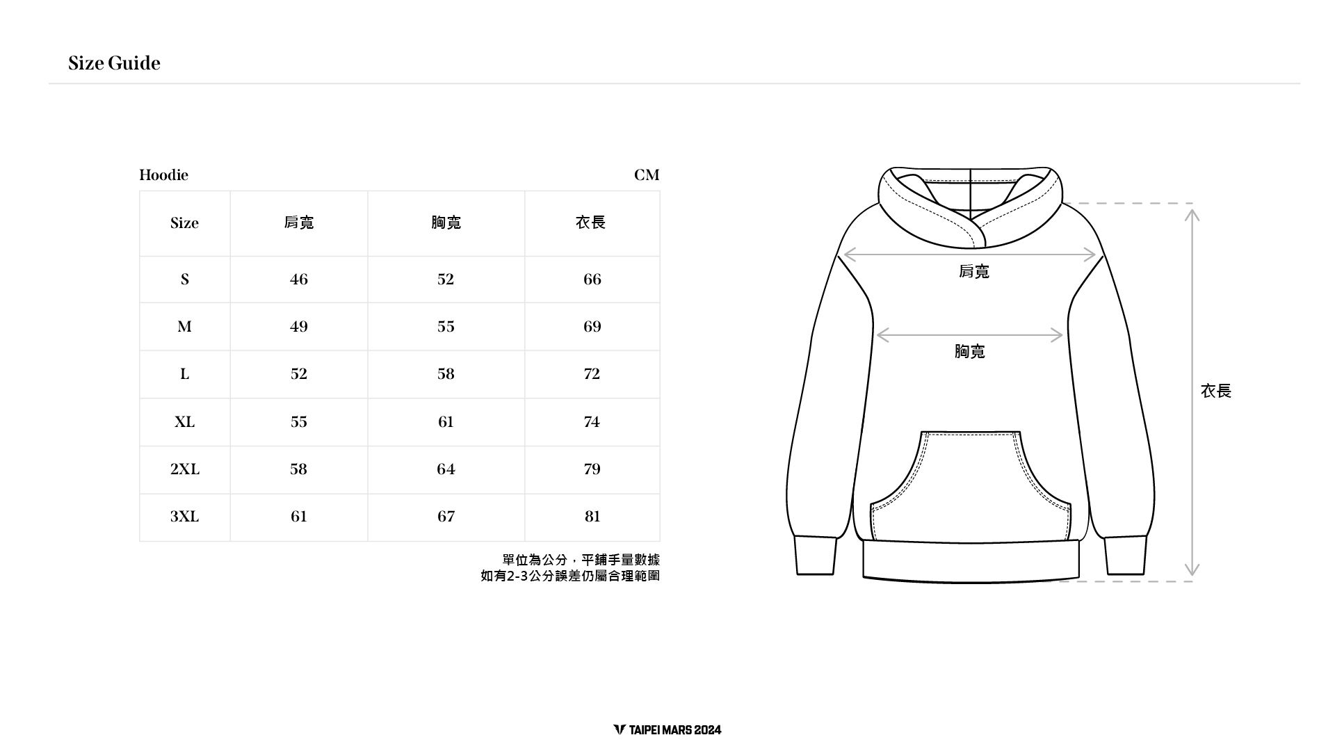 正面以拱形的MARS字體以及TAIPEI CITY BASKETBALL融合中心的籃球,打造出屬於戰友以及台北人的專屬帽TEE。右袖口羽翼設定,詮釋出臺北所屬的快節奏、現代感、流⾏感與小巧思。